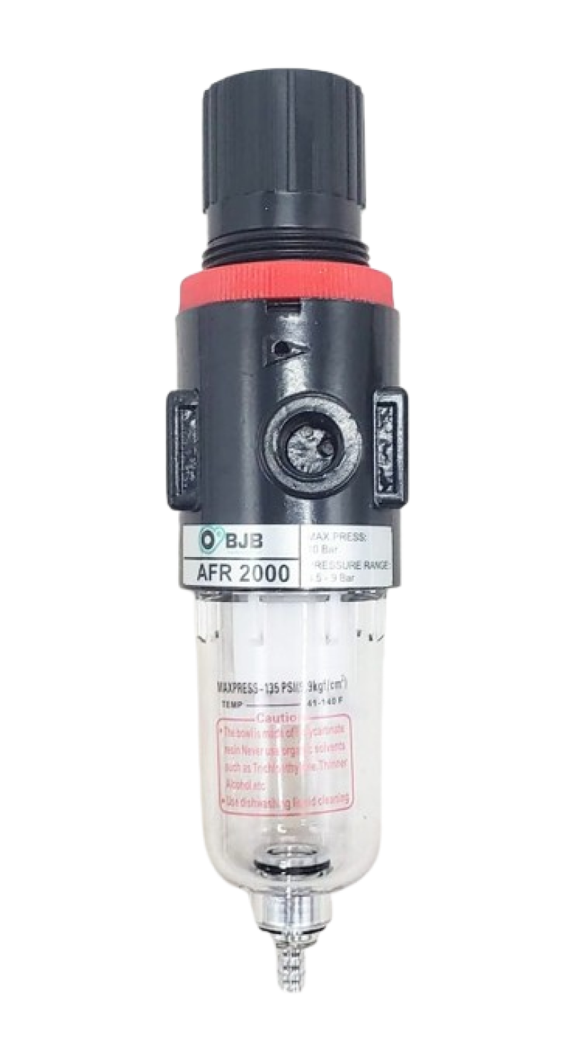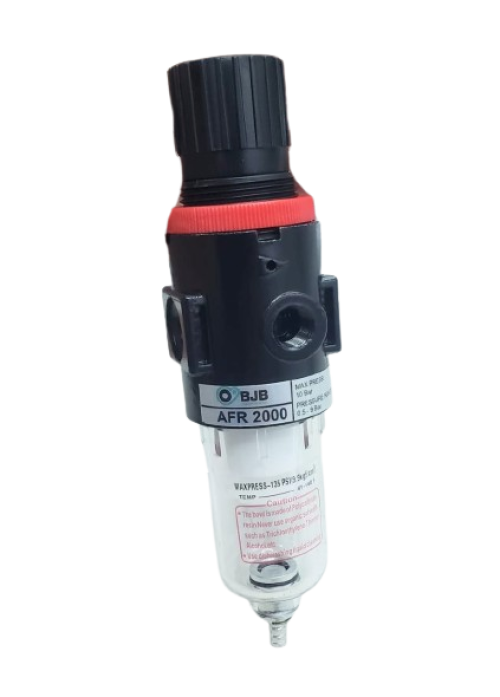 O Filtro Regulador de Ar Comprimido AFR?2000 é um componente de tratamento de ar projetado para remover contaminações (como partículas sólidas, água e óleo), regular a pressão e fornecer ar limpo e estável para sistemas pneumáticos. Ele combina as funções de filtragem, regulação de pressão e descarga automática de condensados, garantindo desempenho eficiente e maior vida útil dos equipamentos pneumáticos.