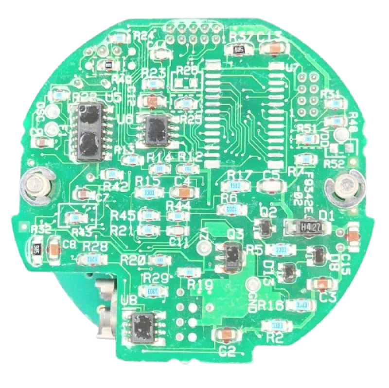 Circuito impresso multicamadas (PCB) com componentes de precisão.