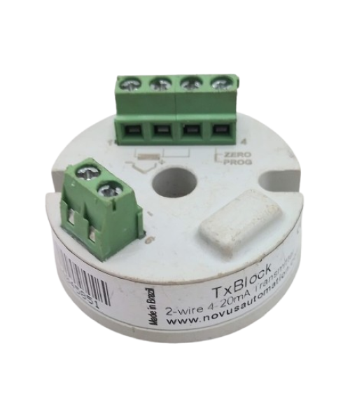 O Transmissor de Temperatura NOVUS TXBlock-USB é um transmissor programável de alta precisão para montagem em cabeçote, ideal para aplicações industriais que exigem medição confiável e integração simples com sistemas de controle. Ele converte o sinal de sensores de temperatura em um sinal padrão de 4–20 mA linearizado, alimentado pelo próprio loop, e permite configuração via porta USB diretamente pelo computador ou aplicativo.