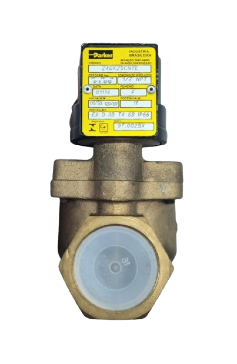 Válvula solenóide industrial da Parker projetada para controlar automaticamente o fluxo de fluidos, como gases, líquidos ou ar, em sistemas de automação e controle de processos. A válvula é acionada eletricamente através de uma bobina solenóide, que abre ou fecha internamente a passagem de fluido conforme a aplicação exige.